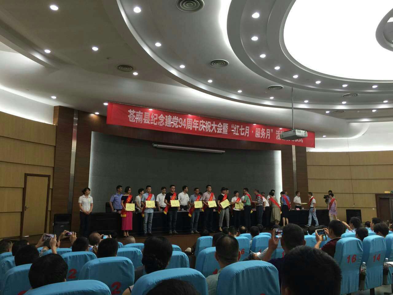 7月1日,在蒼南縣紀念建黨94周年暨“紅七月服務月”啟動儀式上,天信黨委被中共蒼南縣委表彰為“先進基層黨組織”榮譽稱號。同時,公司員工黃華同志被表彰為縣優(yōu)秀黨務工作者。